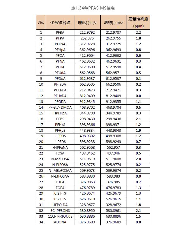 34種PFAS靶向篩查及高分辨質(zhì)譜庫(kù)