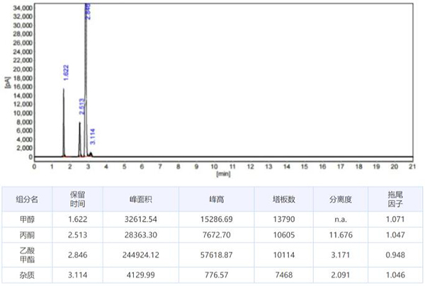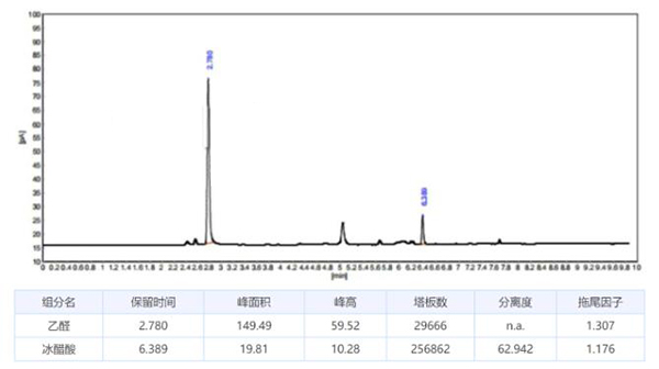 1、月旭WM-InoWAX(30m×0.25mm,0.25μm)測定冰醋酸中乙醛: