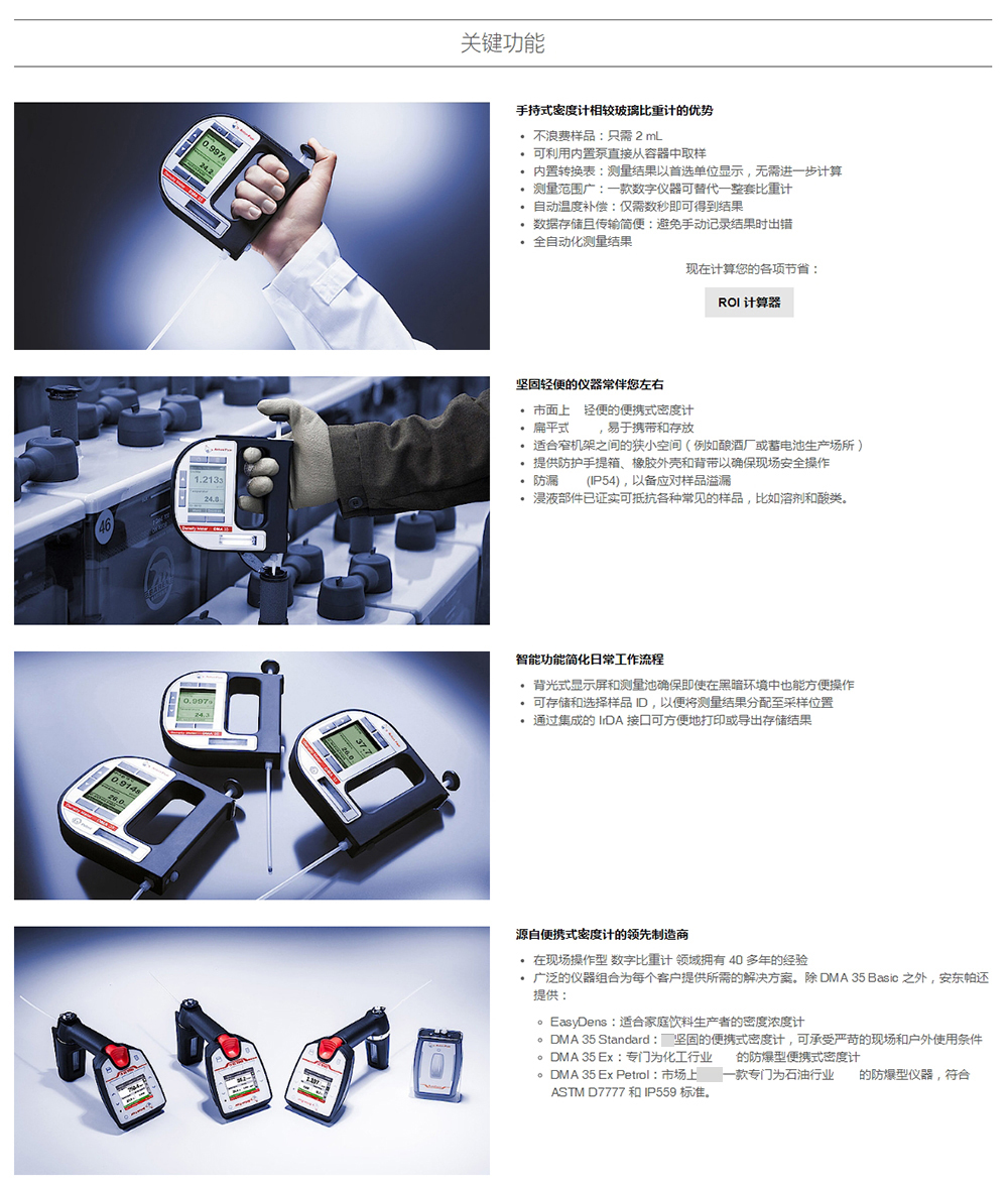DMA 35 Basic 是入門級手持式密度計,可通過內置泵直接從儲存容器中取樣并進行現場測量。測量結果顯示為密度或濃度,例如 °Brix、%v/v 酒精濃度或 %w/w H2SO4。由于采用輕質而扁平,測量難以觸及的樣品(例如儲存在窄機架上的汽車蓄電池或取自堆放的酒桶中的葡萄酒樣品)很方便。