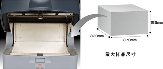 最大可以放置370mm長×320mm寬×155mm高的大型樣品,令緊湊型機身望塵莫及。